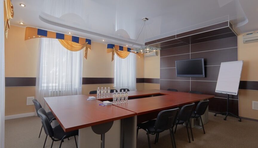Конференц-зал №1 — это отличная площадка для проведения различных мероприятий. Площадь помещения составляет 129 м², оно вмещает до 120 человек. Зал оборудован всем необходимым для проведения мероприятий: системой звукоусиления, проектором, экраном и флипчартом.